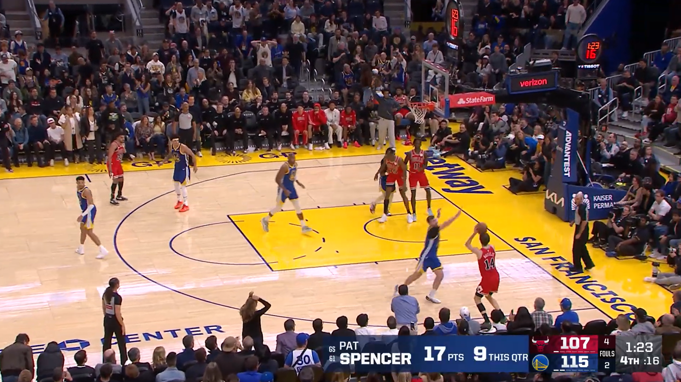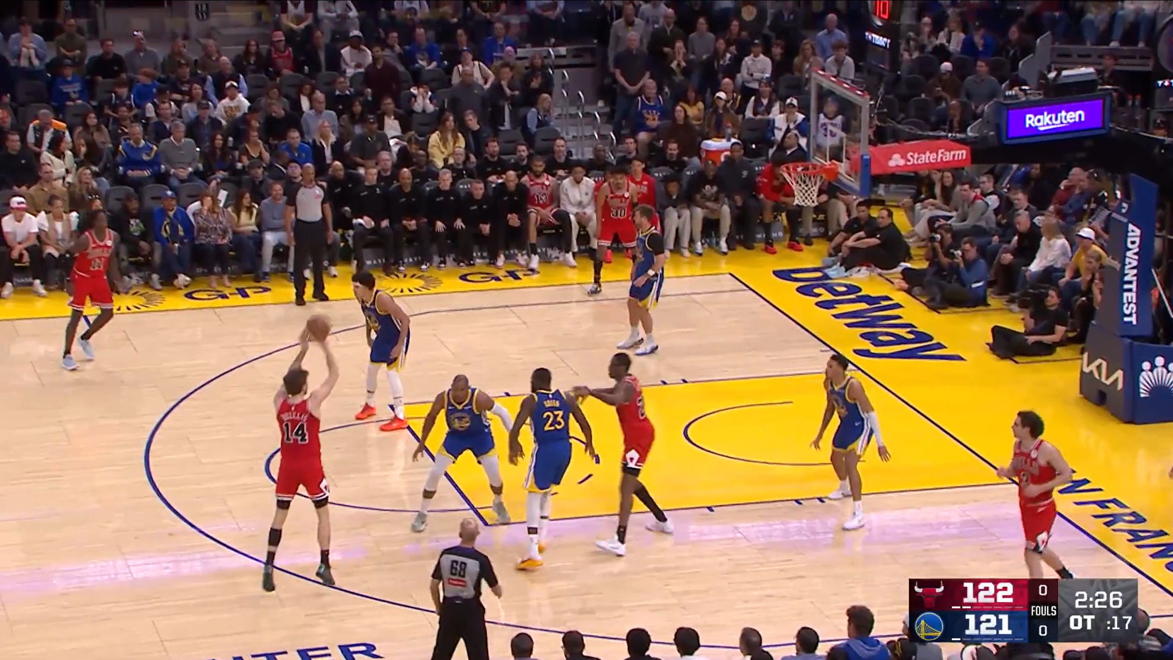 常规赛,公牛客场130-124战胜勇士。